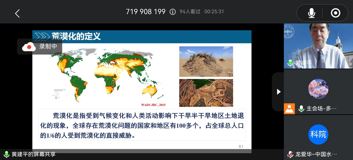 黃建平院士在線做報告 張明截圖