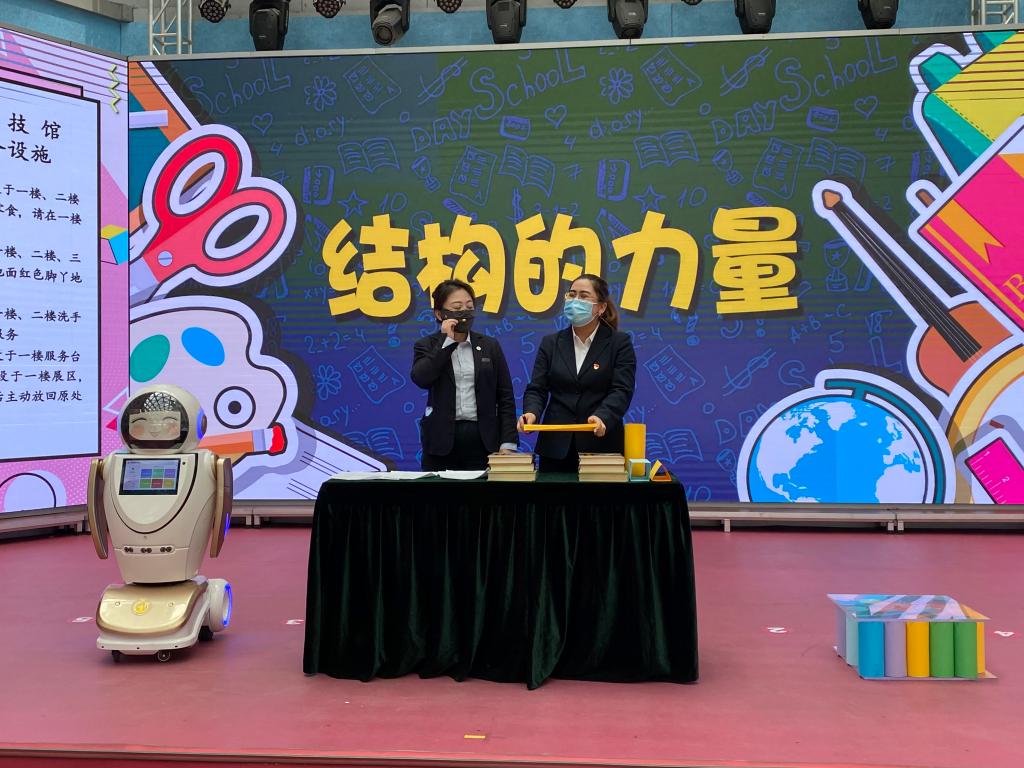 機器人輔導員的一項重要工作是與科技館科技輔導員在科普劇場共同表演科普實驗《結構的力量》,進行“人機交互輔導”。實驗過程中,科技館科技輔導員負責演示、操作,機器人輔導員輔助解釋、與臺下觀眾互動問答,這種新穎有趣的形式引得現場觀眾熱情高漲、踴躍參與?!昂⒆舆€是第一次看機器人給我們講實驗,很吸引人?!?/p>