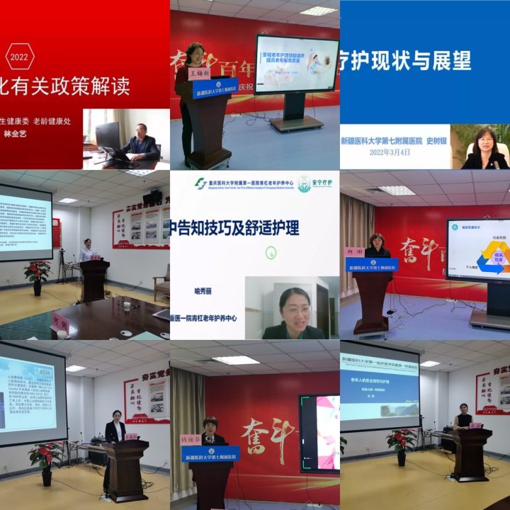 近期,新疆護理學會老年護理專業委員會和自治區衛生健康委員會老齡健康處聯合主辦,新疆醫科大學第七附屬醫院承辦了老年護理專業發展與安寧療護培訓班。培訓班邀請自治區衛生健康委員會老齡健康處處長林全藝、新疆護理學會理事長王梅新、新疆醫科大學第七附屬醫院黨委委員、副院長史樹銀以及重慶醫科大學附一附院青杠老年養護中心醫護辦主任喻秀麗等疆內外專家進行專題授課,全疆160余名護理工作者參加了現場培訓。