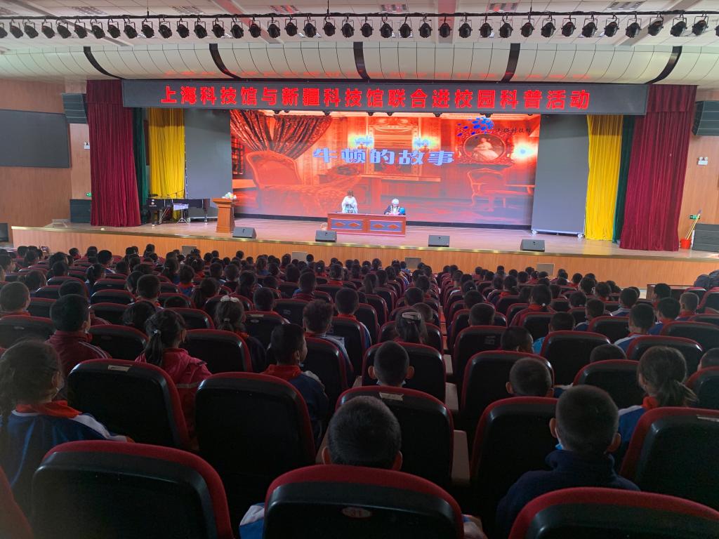 4月26日下午,上海科技館與新疆科技館走進(jìn)烏魯木齊縣第一中學(xué)聯(lián)合開(kāi)展“科普活動(dòng)進(jìn)校園”,為400余名師生帶來(lái)一場(chǎng)精彩紛呈的科普教育活動(dòng)。現(xiàn)場(chǎng)氣氛熱烈,學(xué)生積極參與互動(dòng),爭(zhēng)先恐后地回答科技輔導(dǎo)員提出的問(wèn)題。