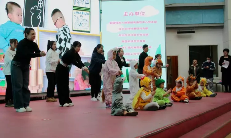 當(dāng)日的活動(dòng)中,有20余名正在新疆殘疾人康復(fù)服務(wù)指導(dǎo)中心進(jìn)行康復(fù)訓(xùn)練的兒童參加,他們中的聽力障礙兒童帶來舞蹈《呱呱呱練習(xí)曲》,來自新疆師范大學(xué)的志愿者與孤獨(dú)癥智力障礙兒童合演繪本劇《彩虹色的愛》。此外,來自自治區(qū)廣電局和公安廳的志愿者,以及新疆廣播電影電視少兒藝術(shù)團(tuán)分別帶來歌曲和兒童劇。
