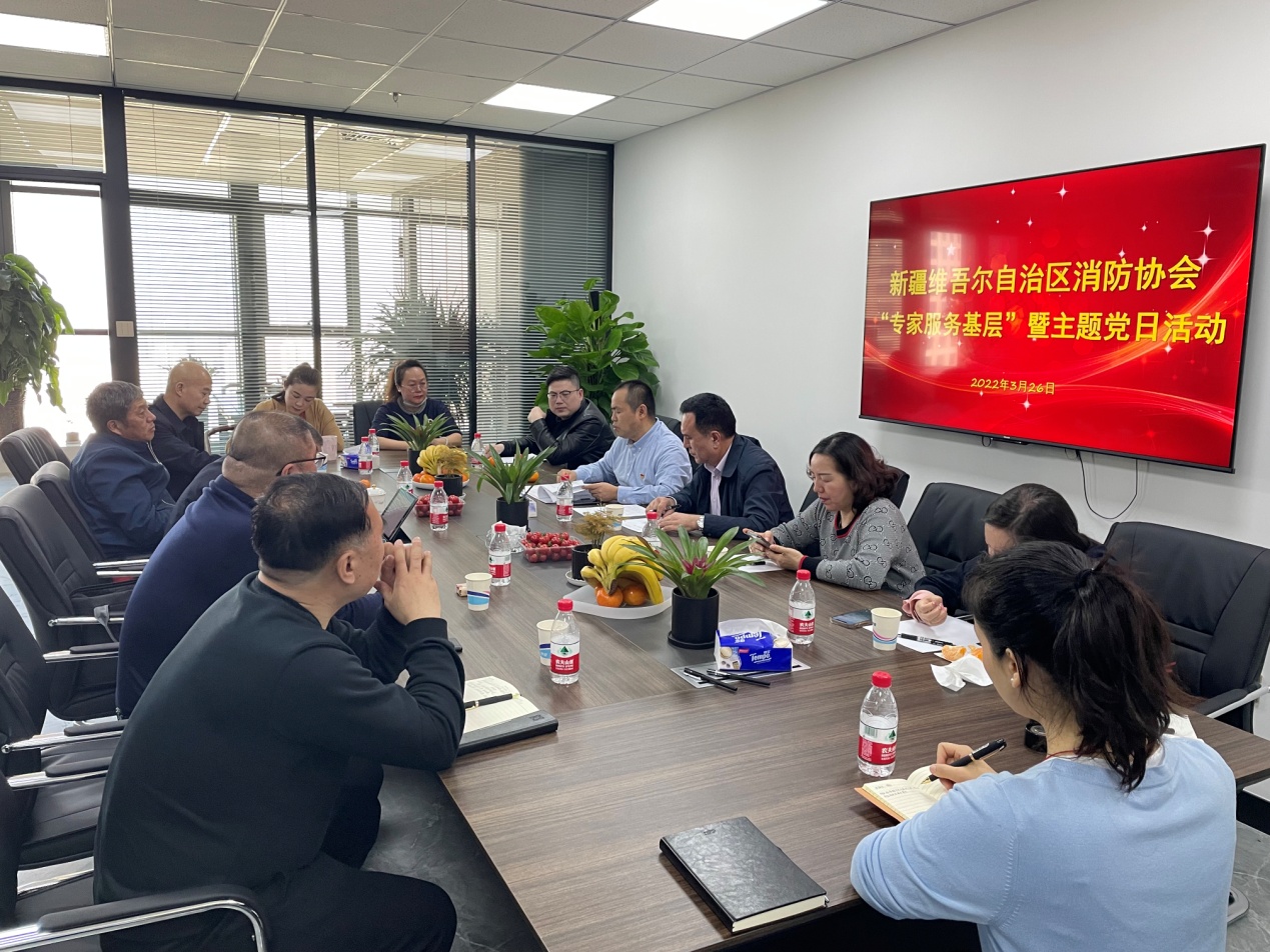 3月26日下午,新疆消防協(xié)會(huì)黨支部會(huì)同自治區(qū)科協(xié)學(xué)會(huì)學(xué)術(shù)部、新疆勘察設(shè)計(jì)協(xié)會(huì)、新疆民營實(shí)業(yè)家協(xié)會(huì)、新疆安裝技工學(xué)校、新疆建筑設(shè)計(jì)研究院建設(shè)行業(yè)職工教育培訓(xùn)中心、優(yōu)路教育新疆教學(xué)部,組織專家團(tuán)隊(duì)深入烏魯木齊英華職業(yè)培訓(xùn)學(xué)校和中企金融研究院,開展兩會(huì)精神宣講及“專家學(xué)者企業(yè)行”主題黨日活動(dòng)。自治區(qū)科技社團(tuán)黨委委員、科協(xié)學(xué)會(huì)學(xué)術(shù)部部長艾斯克爾˙臺(tái)外庫力、新疆消防協(xié)會(huì)黨支部書記、秘書長閆懷宣、新疆財(cái)經(jīng)大學(xué)教授王建疆及12名黨員專家參加活動(dòng)。