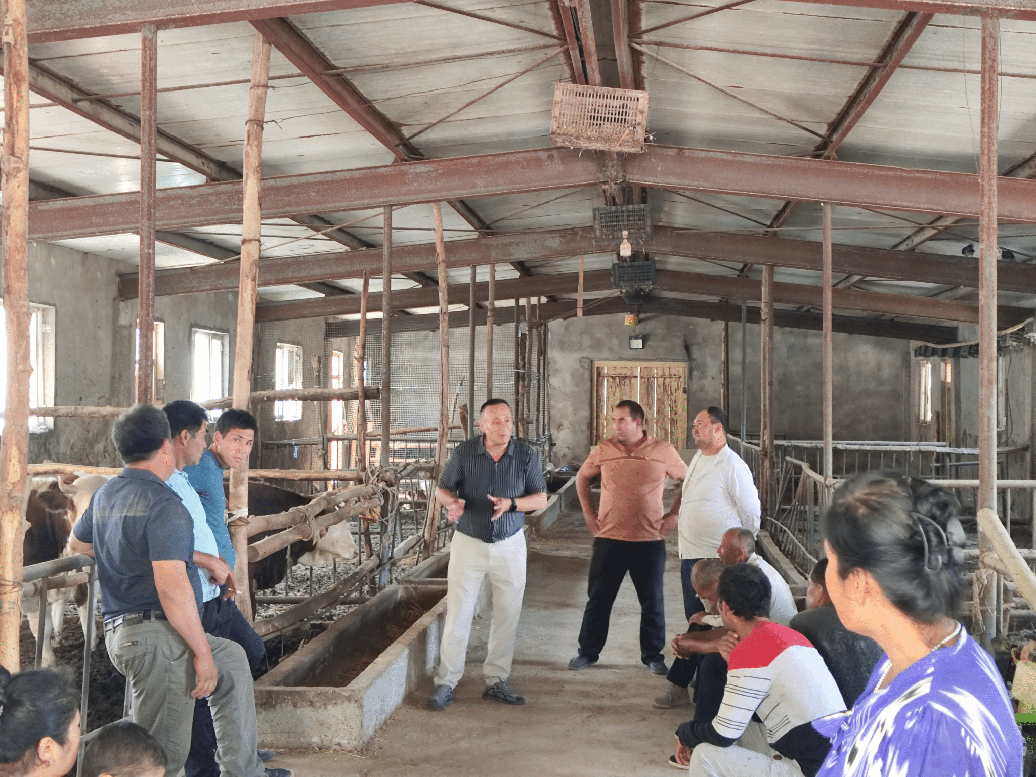夏季是畜禽疫病高發期,艾沙江·阿布拉把“防疫課”搬進了圈舍,從日常管理到疫病防控,把實用技術講得細致又好懂。“夏天天氣熱、濕度大,口蹄疫和布病是重點防控的疫病,疫苗一定要按時接種,不能漏一針;圈舍每天都要清掃,每周至少徹底消毒一次,糞便、污水及時清理,不給病菌留機會。”他還蹲下身,拿起新鮮的牛羊糞便,教大家通過顏色、形狀判斷畜禽的健康狀況。“正常的糞便成形、顏色均勻,如果出現稀便、帶血或者有異味,就說明牛羊可能生病了,要及時檢查治療。”