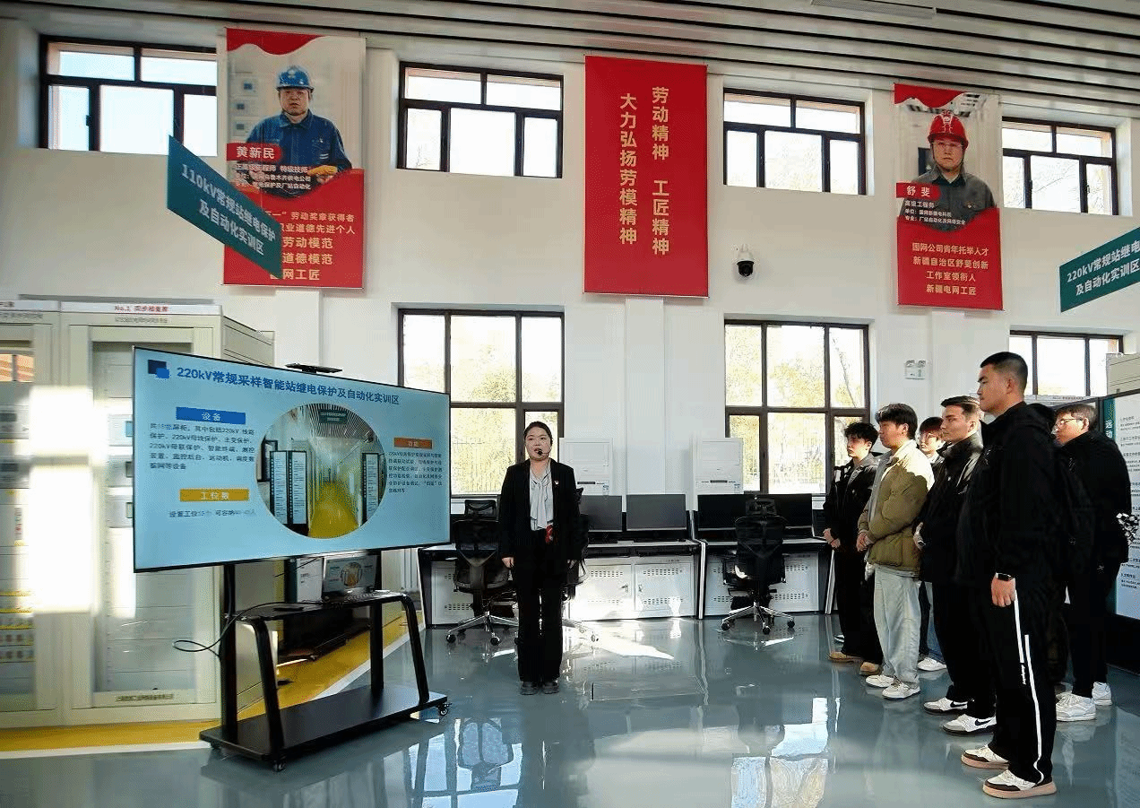 活動首站設于國網新疆電力有限公司繼電保護實訓基地。在體驗過程中,新疆大學電氣工程學院的學生們在專業講解員的引導下,現場觀摩了模擬線路接地故障場景的演示。這一環節不僅讓大家直觀領略了智能電網“精準判斷、快速響應”的先進能力,也深刻理解了繼電保護裝置作為“電網安全衛士”所發揮的關鍵作用。