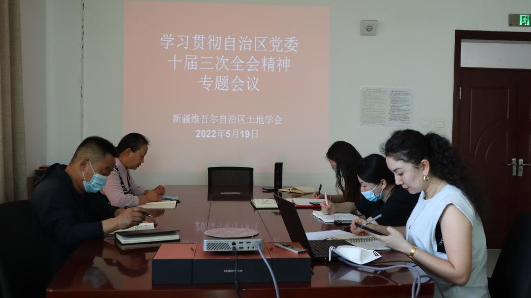 5月14日至15日,中國共產(chǎn)黨新疆維吾爾自治區(qū)第十屆委員會第三次全體會議在烏魯木齊召開。5月19日上午,新疆土地學(xué)會黨支部組織學(xué)習(xí)貫徹自治區(qū)黨委十屆三次全會精神,學(xué)會全體工作人員對全會精神進(jìn)行了認(rèn)真學(xué)習(xí)。