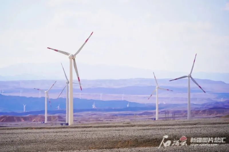 在哈密十三間房風區,連片的風力發電機組正在不間斷將綠色電能輸送出去。郭子毅攝