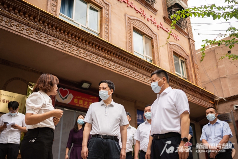 7月15日,由中國工程院、新疆科協聯合組織的“院士新疆行”醫學調研組的院士正在古扎社區調研。石榴云/新疆日報記者呂伊晗 攝