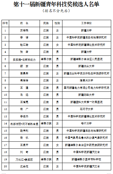 附件:第十一屆新疆青年科技獎候選人名單