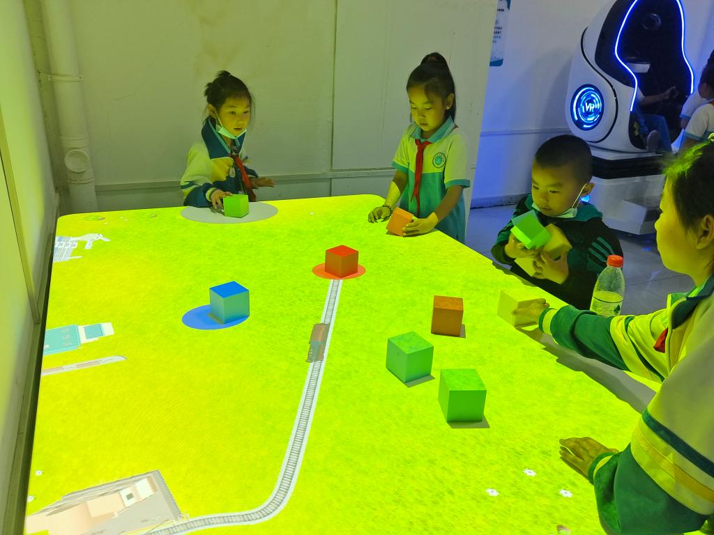 參觀過程中,科技輔導員耐心地向同學們介紹和講解科技展品。同學們參觀體驗了模擬身高、人體發電、地震體驗VR、裸眼3D(幻影成像技術)、魯班鎖等科普展品,紛紛被展館內各種高科技展品深深吸引,不時發出贊嘆聲,并表示有時間還要和家人一起再過來看看。