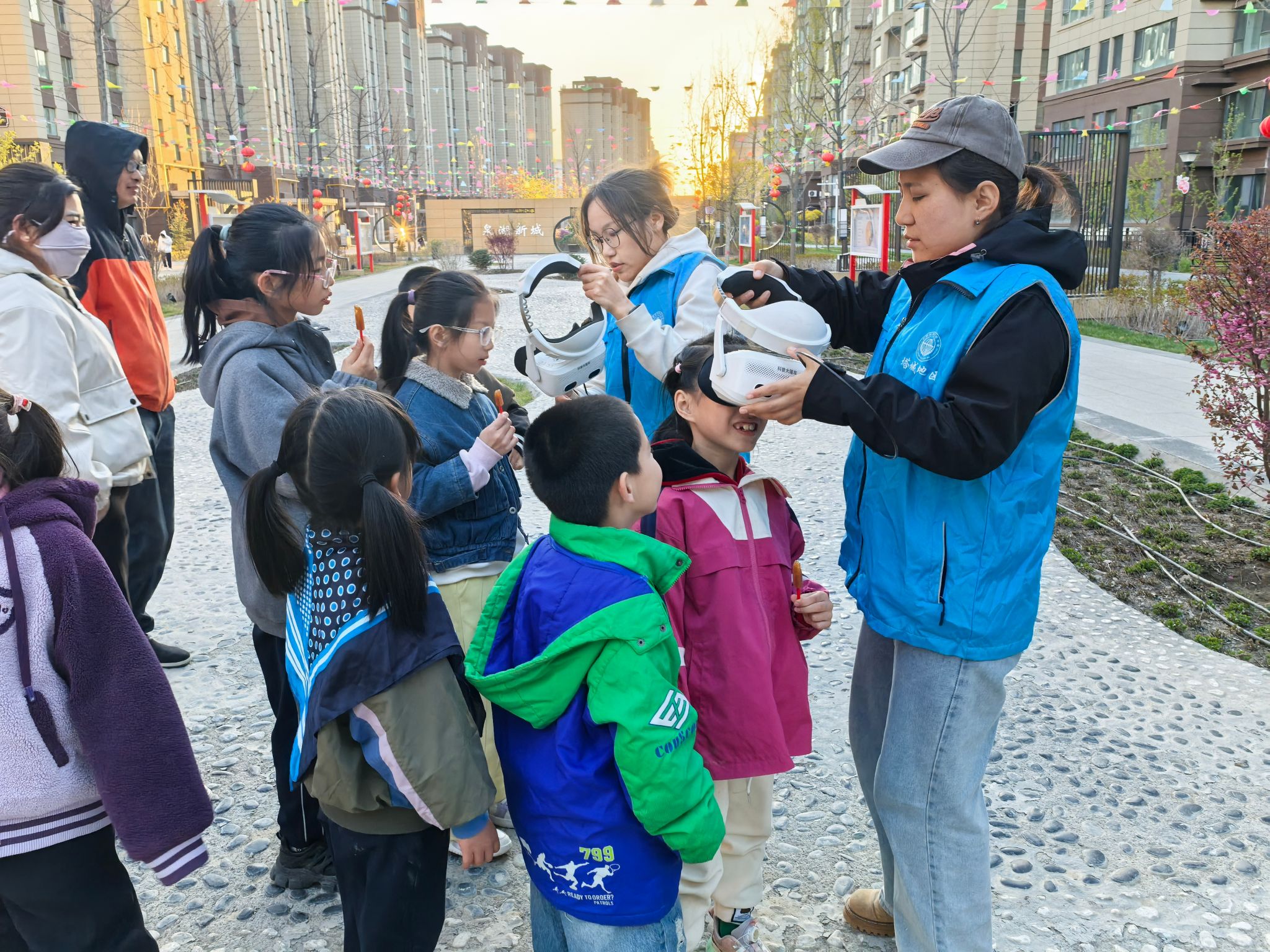 活動現場,姿態靈活、功能多樣的機器人閃亮登場。阿爾法機器人隨著動感的音樂節奏,靈活地扭動身軀,做出各種高難度動作,其流暢的動作和可愛的造型瞬間吸引了眾多居民的目光,贏得陣陣歡呼。機器狗“笨笨”則與居民們親切互動,做出各種可愛有趣的動作,例如“比心”“拜年”“伸懶腰”等,讓大家在歡樂中感受到了科技的無限魅力。科技館的工作人員為現場的觀眾們佩戴VR眼鏡,其所呈現的奇幻場景也讓大家體驗到了前所未有的精彩科技體驗,置身于科技的世界。