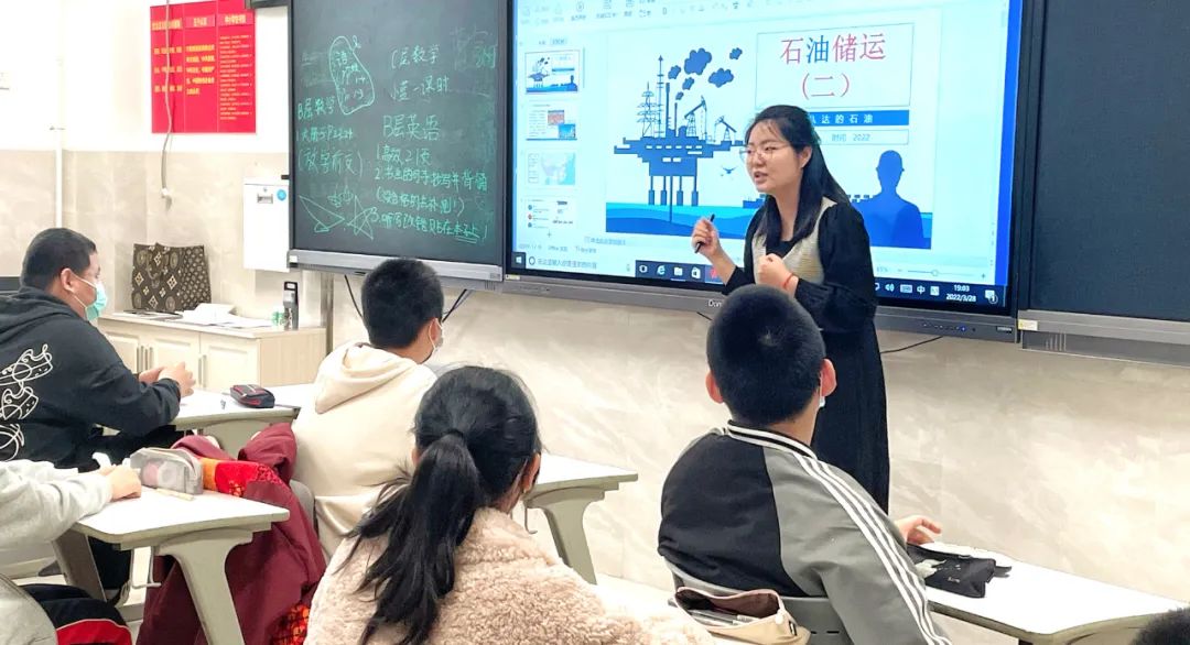 此次授課作為“石油科普進校園”系列課程的第二次試講,秦夢華老師圍繞石油的船運、管道輸送和車運三種運輸方式展開。其中,秦老師設計“模擬中緬油氣管道路線”的活動,分小組利用工具對管道路線設計進行動手實操,學生們興趣高昂,氣氛活躍,制作完成后踴躍上講臺對作品進行講解,加深對石油管道運輸方式的了解。