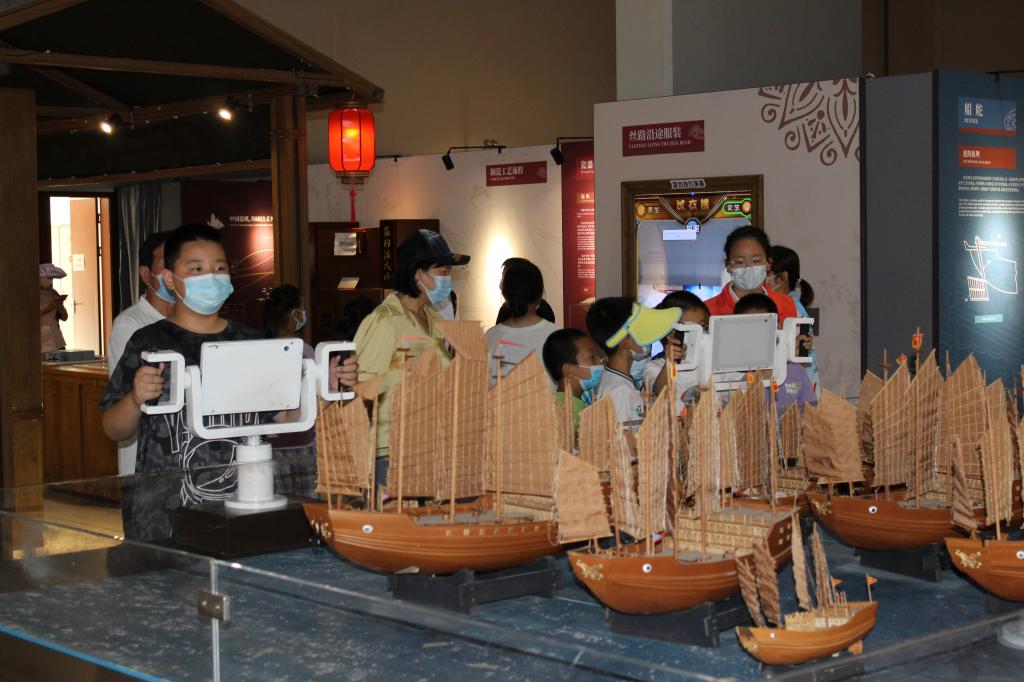 學(xué)生們興致勃勃地來(lái)到了《發(fā)現(xiàn)絲綢之路的智慧》主題展覽。整個(gè)展覽分為“對(duì)異域的想象”“帶什么商品去中國(guó)”“驛站與驛道”“漫游古代中國(guó)”“海上歷險(xiǎn)”“世界在變”6個(gè)展區(qū)。在科技志愿者的引導(dǎo)下,學(xué)生們“化身”古代絲路旅行家和商人,領(lǐng)略沿陸上和海上絲綢之路傳播的古代科技與物質(zhì)文化,感受了一次古代商人挑選商品、運(yùn)送貨物、在海上歷險(xiǎn)的特殊經(jīng)歷,也詳細(xì)了解到古代中國(guó)的絲綢、陶瓷、紙與印刷術(shù)的科技原理、工藝流程、傳播過(guò)程和國(guó)際影響,進(jìn)一步增強(qiáng)了民族自信心和自豪感。