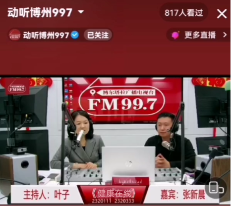 活動走進《動聽博州997》直播間《健康在線》欄目,開展腦卒中相關科普。直播現場,神經中心醫生張新晨與聽眾們分享了預防卒中的方式方法,通過分析如何改善腦卒中的危險因素,使腦卒中可防可治的觀念深入人心,并就卒中防治存在的院前延誤時間較長、溶栓救治率較低等問題,向大家講解了如何進行有效的早期識別和院前救護。