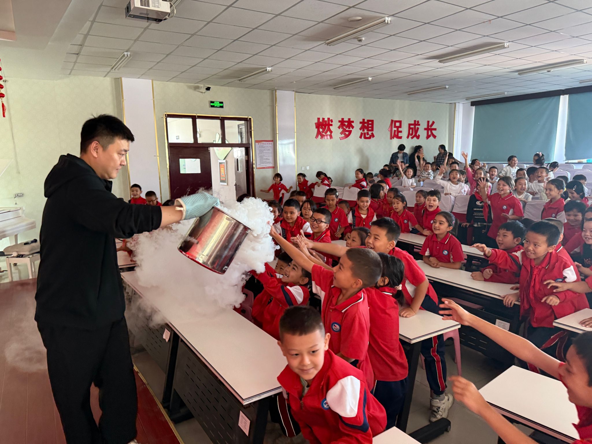 活動中,一年級的張瑾研同學指著液氮實驗中瞬間綻放的白色氣團,興奮地說:“那個白色的煙好神奇!老師告訴我們這個東西特別冷,絕對不能用手碰!”稚嫩的話語道出了孩子們在樂趣中學到的安全知識。