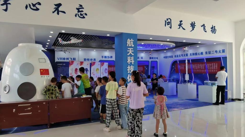 在科普館航空航天展廳中,天宮空間站系列、神舟、長征載人火箭系列、嫦娥四號月球巡視器的互動模型及我國航空航天發(fā)展歷程展示等展品,讓青少年了解我國航空航天的發(fā)展歷史和最新成果。