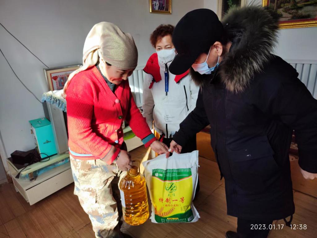 1月17日,哈密市科協(xié)黨組書記、副主席哈斯葉蒂·依沙克和黨組副書記、主席蘇勝帶隊來到巴里坤縣黃土場村看望慰問單位幫扶村民,與村民們進行親切的交流,詳細(xì)了解家庭生產(chǎn)生活情況,向他們送去新春的祝福和食用油、面等慰問品。