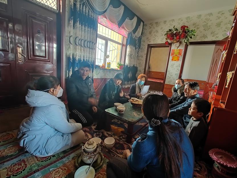 1月18日,科協(xié)全體干部來到伊州區(qū)陶家宮鎮(zhèn)幸福村看望慰問駐村“訪惠聚”工作隊,了解工作生活情況,并與工作隊員一起走進結(jié)親戶家中走訪慰問。每走一戶,慰問組都向結(jié)親戶們送去關(guān)懷和節(jié)日的祝福,并送去由蘇勝主席親手書寫的200幅春聯(lián)和食用油、面等生活用品。在走訪慰問過程中,哈斯葉蒂·依沙克向群眾宣講黨的二十大精神。當(dāng)天下午,哈斯葉蒂·依沙克還代表科協(xié)參加了陶家宮鎮(zhèn)迎新春晚會,與村民們一起載歌載舞,共度佳節(jié)。