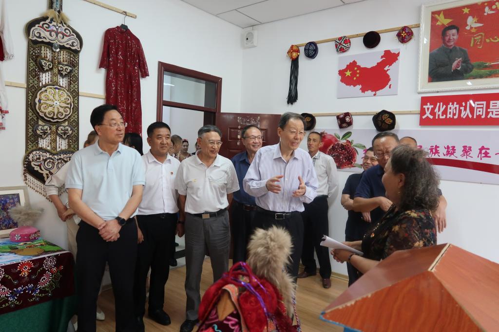 在伊寧縣老科協科技服務示范基地手工藝品協會,考察組一行詳細了解了伊寧縣老科協依托手工藝品協會積極引導當地婦女按照特色手造,傳承非遺文化,突出產業發展助力鄉村振興的經驗做法。
