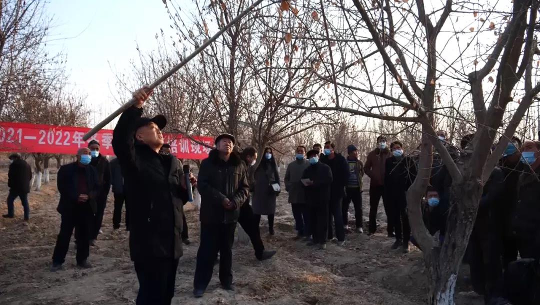 “這個杏樹大家看一下,樹形特別亂,肯定從種下去到現在沒怎么認真剪過枝……”在拜城縣亞吐爾鄉伊希塔其村,一場冬季果樹剪枝技術培訓正在進行。