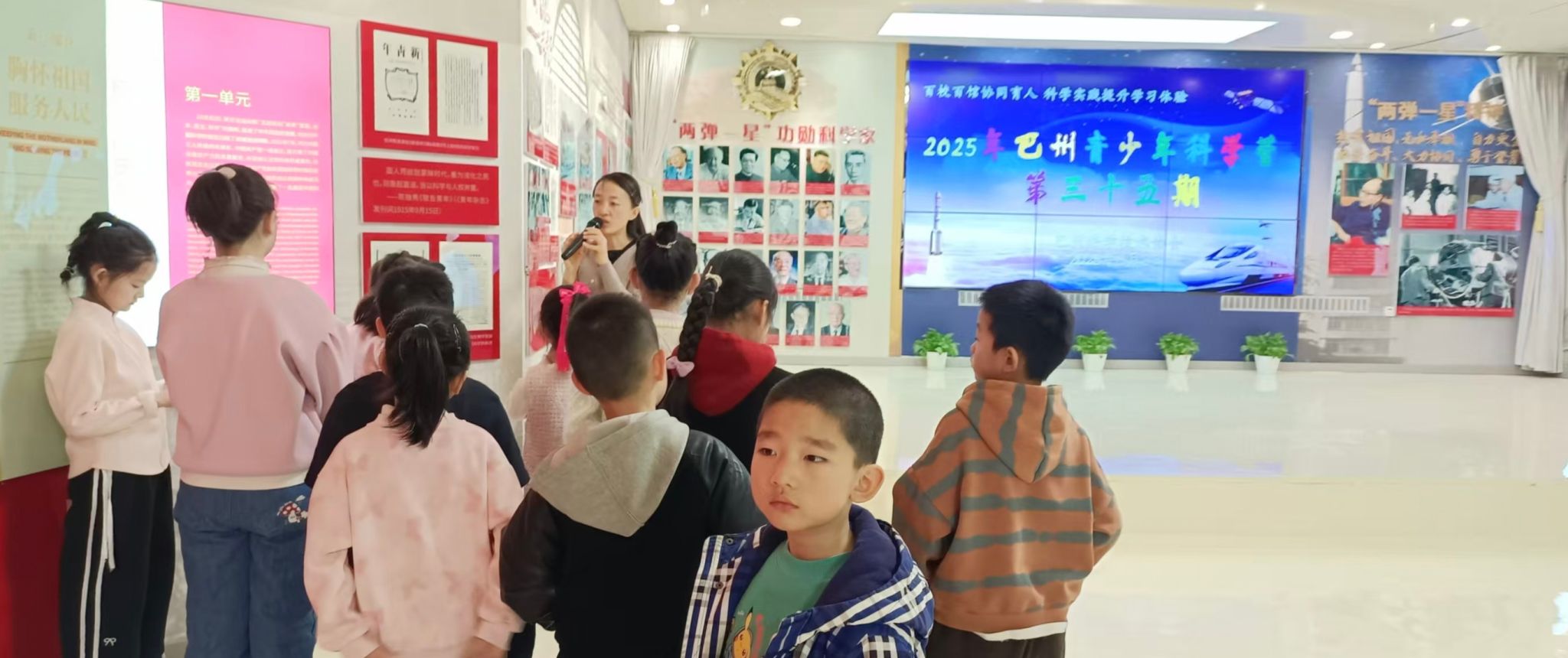 學生們在講解員的帶領下集體觀看了科學家精神主題視頻,并參觀了科學家精神展廳。通過生動的影像資料和珍貴的歷史展品,孩子們深入了解了錢學森、鄧稼先等科學先驅的奮斗故事。