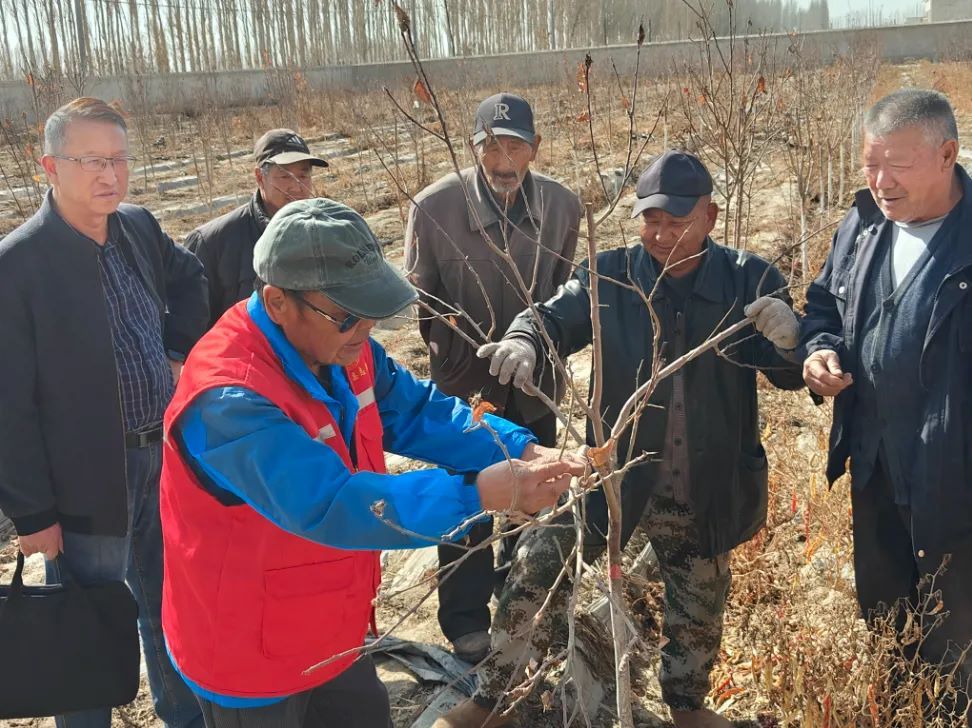 在古努恩布呼村新梅種植示范園內(nèi),技術專家結合土壤、氣候特點,圍繞新梅樹修剪、拉枝塑形、水肥管理及病蟲害防治等關鍵技術展開講解。針對果農(nóng)普遍反映的“剪枝留芽難把握”“拉枝角度不科學”等問題,專業(yè)人員手持修枝工具現(xiàn)場示范,分析樹形結構,指導果農(nóng)如何疏除過密枝、保留結果枝,并通過調(diào)整拉枝角度改善光照條件。參訓果農(nóng)紛紛上前動手實踐,現(xiàn)場互動頻繁,技術要點在“一問一答”中深入人心。