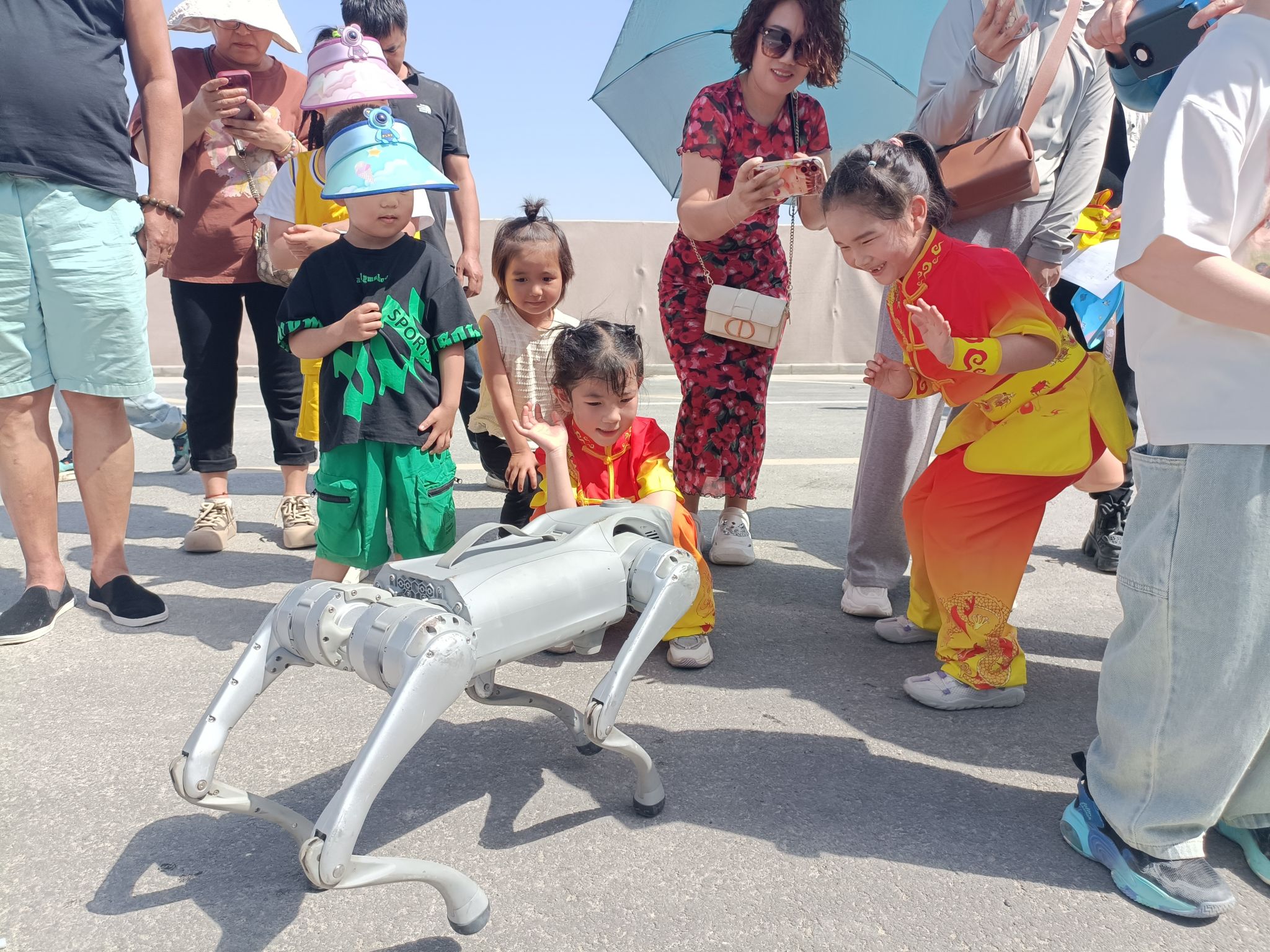 活動現(xiàn)場,科普大篷車宛如一座移動科技館,成為最吸睛的 “人氣擔當”。四足機器狗憑借靈活的動作和擬人化互動成為全場焦點,孩子們爭相與這位"科技明星"親密接觸;舞蹈機器人則隨著音樂節(jié)奏精準舞動,其靈動姿態(tài)引發(fā)觀眾陣陣喝彩。在 VR 虛擬現(xiàn)實體驗區(qū),孩子們戴上設(shè)備 “穿越” 到浩瀚宇宙,沉浸式感受天體運行的奧秘,這種 “可觸摸、可互動” 的科普形式,讓科學(xué)知識不再晦澀難懂。