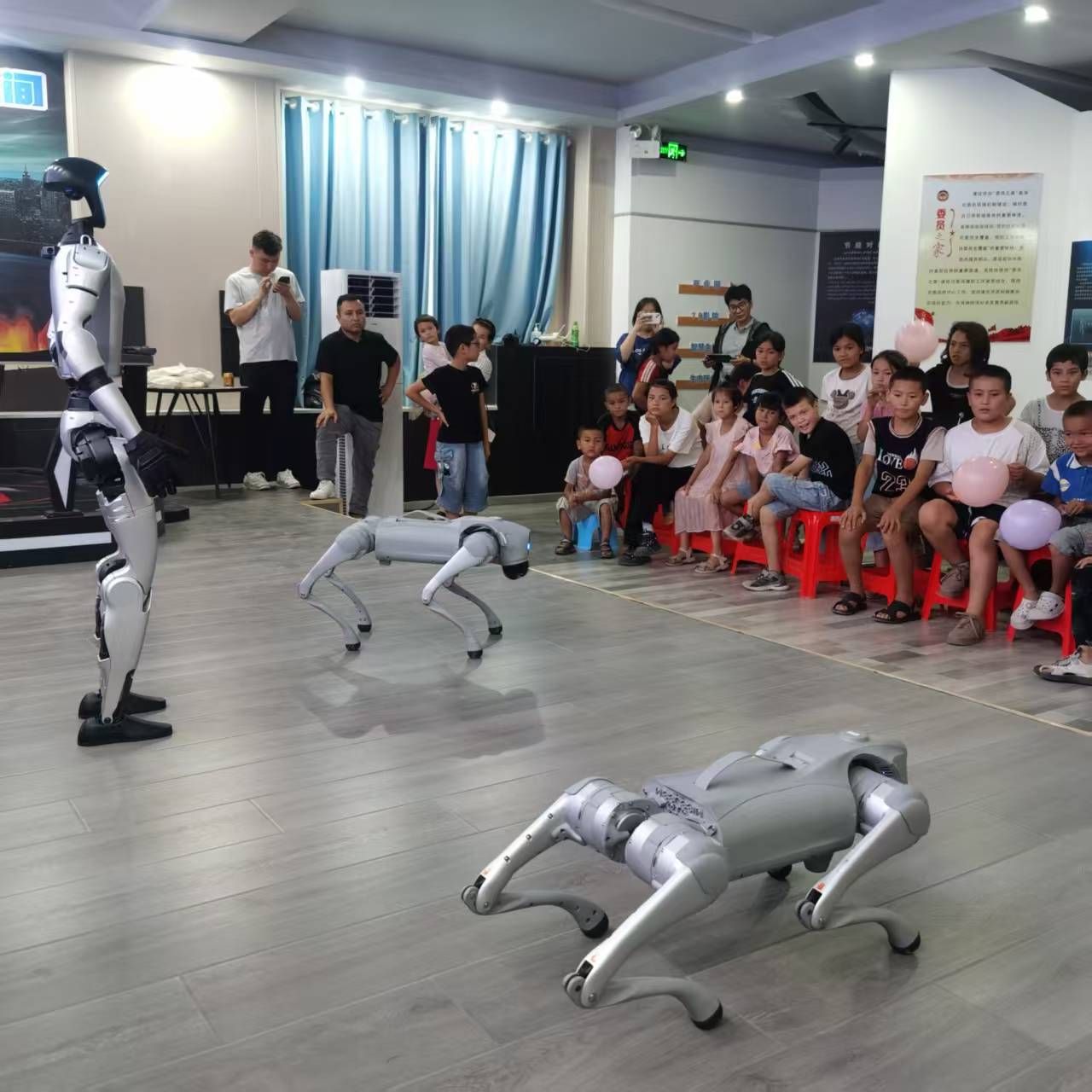當(dāng)銀灰色的宇樹機(jī)器人邁著歡快的步伐走進(jìn)孩子們的視野,在工作人員熟練操控下,宇樹機(jī)器人靈活自如地完成行走、奔跑、招手、飛吻等動作。其流暢的運(yùn)動軌跡和擬人化的表現(xiàn)力引得現(xiàn)場驚嘆連連,孩子們目不轉(zhuǎn)睛,近距離感受著現(xiàn)代機(jī)器人技術(shù)的魅力。