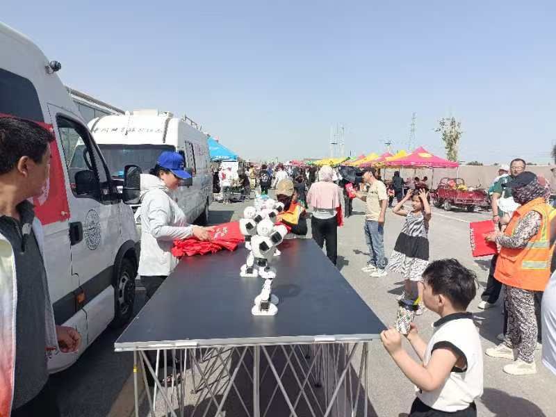 在博湖縣百信公園的"科技之冬"大集上,四足機(jī)器狗的靈活轉(zhuǎn)體與宇樹(shù)機(jī)器人的同步舞蹈,讓趕大集的農(nóng)牧民駐足圍觀。當(dāng)主持人拋出"機(jī)器人靠什么感知環(huán)境"的問(wèn)題時(shí),維吾爾族大叔買(mǎi)買(mǎi)提率先舉手:"是雷達(dá)!就像汽車(chē)的倒車(chē)?yán)走_(dá)!"這場(chǎng)融入鄉(xiāng)村集市的科普活動(dòng),通過(guò)有獎(jiǎng)競(jìng)答將科技知識(shí)變成了"看得見(jiàn)、摸得著、學(xué)得會(huì)"的生活智慧。