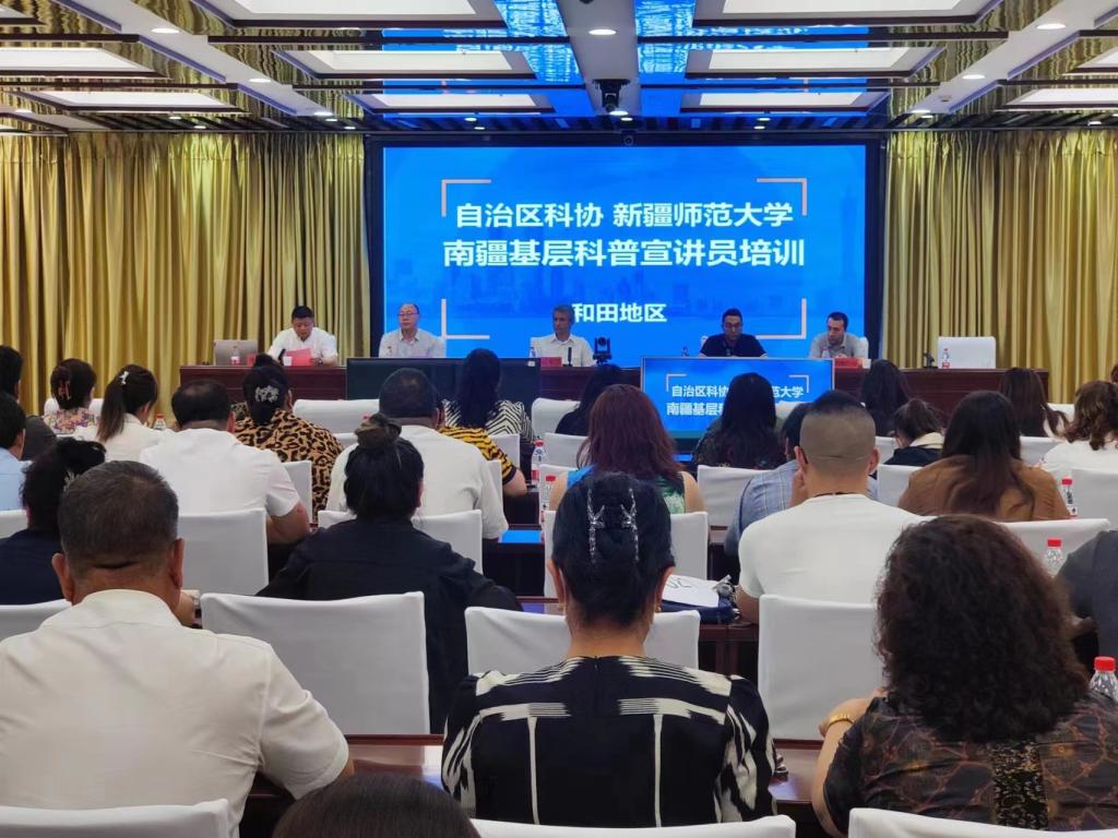 2023年6月12日,自治區科協、新疆師范大學南疆基層科普宣講員科學素質能力培訓班在和田市召開。培訓采取現場集中培訓和線上視頻培訓相結合方式開展科普專題講座,發放培訓資料和開展滿意度測評,內容結合新疆基層科普工作的難點、薄弱點和基層科普宣講員在工作中遇到的具體問題,開展系列科普知識培訓,從而提升科學素養和實際工作能力。和田市各鄉鎮、街辦50余名科普員參加現場培訓。